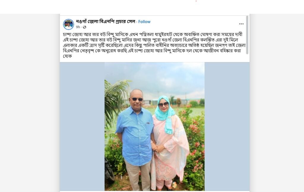 নওগাঁ-২ আসনে পরাজয়, ফেসবুক পোস্ট ঘিরে বিতর্ক; পত্নীতলা-ধামইরহাটে বিএনপি নেতাদের বিরুদ্ধে ব্যবস্থা নেওয়ার দাবি
